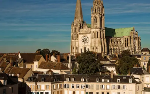 À une centaine de kilomètres au sud-ouest de Paris, sur le plateau de la Beauce, Chartres est une ville moyenne surmontée par les flèches de la cathédrale Notre-Dame de Chartres.